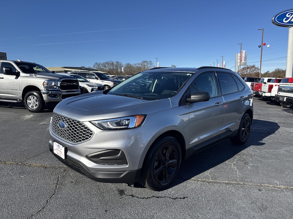 Certified. Iconic Silver Metallic 2024 Ford Edge SE AWD 8-Speed Automatic EcoBoost 2.0L I4 GTDi DOHC Turbocharged VCT 4-Wheel Disc Brakes, 6 Speakers, ABS brakes, Air Conditioning, Alloy wheels, AM/FM radio: SiriusXM with 360L, AM/FM Stereo, Automatic temperature control, Black Roof-Rack Side Rails, Cloth Bucket Seats, Driver door bin, Driver vanity mirror, Dual front impact airbags, Dual front side impact airbags, Emergency communication system: SYNC 4 911 Assist, Equipment Group 100A, FordPass Connect, Four wheel independent suspension, Front & Rear Floor Liners w/Carpet Mats, Front anti-roll bar, Front Bucket Seats, Front Center Armrest w/Storage, Front dual zone A/C, Front reading lights, Illuminated entry, Knee airbag, Low tire pressure warning, Occupant sensing airbag, Outside temperature display, Overhead airbag, Overhead console, Passenger door bin, Passenger vanity mirror, Power steering, Power windows, Rear anti-roll bar, Rear reading lights, Rear seat center armrest, Rear window defroster, Remote keyless entry, SiriusXM w/360L, Steering wheel mounted audio controls, SYNC 4A w/Enhanced Voice Recognition, Tachometer, Traction control, Trip computer, Wheels: 18 Sparkle Silver-Painted Aluminum.21/28 City/Highway MPGCertification Program Details: Ford Blue Advantage: Blue Certified* 139 Point Inspection* Transferable Warranty* Vehicle History* Warranty Deductible: $100* Roadside Assistance* Limited Warranty: 3 Month/4,000 Mile (whichever comes first) after new car warranty expires or from certified purchase date* and 11,000 FordPass Rewards Points to use toward first maintenance visit