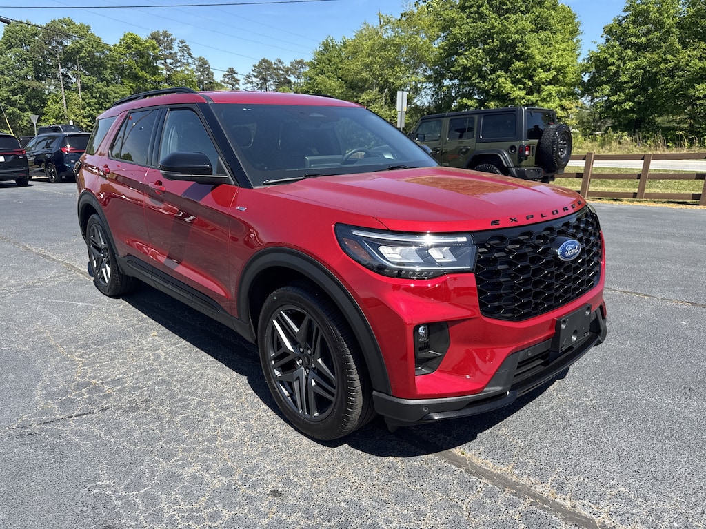 Certified. Red Metallic 2025 Ford Explorer ST-Line RWD 10-Speed Automatic 2.3L EcoBoost I-4 *APPLE CARPLAY/ANDROID AUTO*, *HEATED LEATHER SEATS*, *BLUETOOTH*, 10 Speakers, 110V/150W AC Power Outlet, 2nd Row Captain's Chairs w/E-Z Entry & Armrest, 2nd Row Heated Seats, 3rd row seats: bench, 4-Wheel Disc Brakes, ABS brakes, Air Conditioning, Alloy wheels, AM/FM radio: SiriusXM with 360L, Ambient Lighting, Apple CarPlay/Android Auto, Auto High-beam Headlights, Auto-Dimming Interior Rear-View Mirror, Automatic temperature control, Brake assist, Bumpers: body-color, Compass, Delay-off headlights, Driver door bin, Driver vanity mirror, Dual front impact airbags, Dual front side impact airbags, Electronic Stability Control, Emergency communication system: 911 Assist, Equipment Group 300A Standard Package, Exterior Parking Camera Rear, Four wheel independent suspension, Front & 2nd Rows Floor Liners w/Carpet Floor Mats, Front anti-roll bar, Front Bucket Seats, Front Center Armrest, Front dual zone A/C, Front fog lights, Front License Plate Bracket, Front reading lights, Fully automatic headlights, Garage door transmitter, Heated door mirrors, Heated front seats, Heated steering wheel, Heated Unique Cloth Captain's Chairs, Illuminated entry, Internet access capable: FordPass Connect 5G, Knee airbag, Leather steering wheel, Low tire pressure warning, Memory Driver's Seat, Navigation System, Occupant sensing airbag, Outside temperature display, Overhead airbag, Overhead console, Panic alarm, Passenger door bin, Passenger vanity mirror, Performance Brakes, Power door mirrors, Power driver seat, Power Liftgate, Power passenger seat, Power steering, Power windows, Power-Folding Sideview Mirrors w/Autofold, Premium Package, Radio: B&O Sound System by Bang & Olufsen, Rain-Sensing Wipers (Front Only), Rear air conditioning, Rear anti-roll bar, Rear reading lights, Rear window defroster, Rear window wiper, Red Painted Perf Front & Rear Brake Calipers, Remote keyless entry, Security system, Speed control, Speed-sensing steering, Speed-Sensitive Wipers, Split folding rear seat, Spoiler, ST-Line Street Pack, Steering wheel mounted audio controls, Tachometer, Telescoping steering wheel, Tilt steering wheel, Traction control, Trip computer, Variably intermittent wipers, Wheels: 20 Ebony-Painted Machined Aluminum, Wheels: 21 Magnetite-Painted Aluminum, Wireless Charging Pad.Recent Arrival! 20/29 City/Highway MPGCertification Program Details: Ford Blue Advantage: Blue Certified* 139 Point Inspection* Transferable Warranty* Vehicl