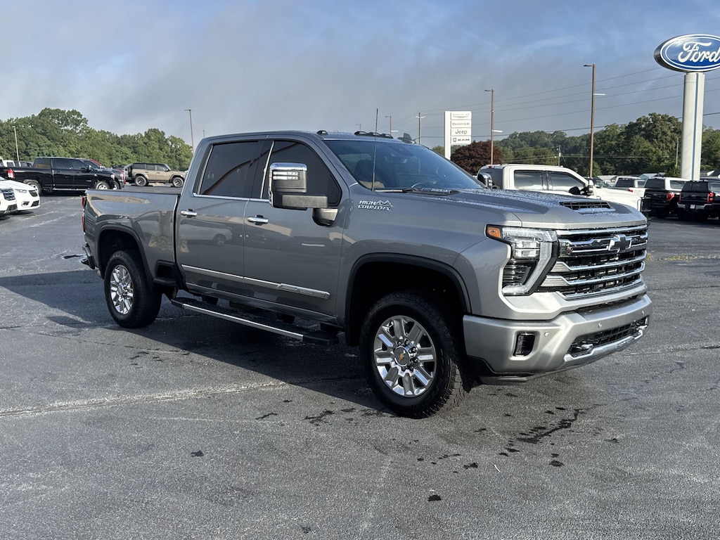 Sterling Gray Metallic 2024 Chevrolet Silverado 3500HD High Country 4WD 10-Speed Automatic Duramax 6.6L V8 Turbodiesel 120-Volt Bed Mounted Power Outlet, 120-Volt Interior Power Outlet, 170 Amp Alternator, 6 Rectangular Chromed Tubular Assist Steps, 7 Speakers, Adaptive Cruise Control, AM/FM radio: SiriusXM with 360L, Auto-Dimming Inside Rear-View Mirror, Auto-Dimming Inside Rearview Mirror w/Camera, Bed View Camera w/2 Trailer Camera Provisions, Bluetoothà For Phone, Bose Premium 7-Speaker Sound System, Brake assist, Chevrolet Connected Access Capable, Chevytec Spray-On Black Bedliner, Chrome Door Handles, Chrome Mirror Caps, Color-Keyed Carpeting Floor Covering, Compass Located In Instrument Cluster, Deep-Tinted Glass, Electric Rear-Window Defogger, Front Carpeted Floor Mats, Front Chrome Recovery Hooks, Front LED Fog Lamps, Front Rain-Sensing Wipers, Gooseneck/5th Wheel Package (DISC), Gooseneck/5th Wheel Prep Package, Heated 2nd Row Outboard Seats, Heated Steering Wheel, High Country Premium Package, Hitch Guidance w/Hitch View, Hitch Package (LPO), In-Vehicle Trailering App System, Keyless Open & Start, LED Cargo Area Lighting, Manual Tilt-Wheel/Telescoping Steering Column, Multicolor 15 Diagonal Head-Up Display, OnStar & Chevrolet Connected Services Capable, Polished Exhaust Tip, Power Door Locks, Power Front Windows w/Driver Express Up/Down, Power Front Windows w/Passenger Express Up/Down, Power Rear Windows w/Express Down, Power Sliding Rear Window w/Defogger, Power Sunroof, Power Tailgate, Preferred Equipment Group 3LZ, Push Button Start, Rear Carpeted Floor Mats, Rear Cross Traffic Alert, Remote Vehicle Starter System, SiriusXM w/360L, Speed-sensing steering, Standard Tailgate, Steering Wheel Audio Controls, Steering Wheel Mounted Electronic Cruise Control, Suspension Package, Technology Package, Trailer Camera Provisions, Trailer Side Blind Zone Alert, Ultrasonic Front & Rear Park Assist, Unauthorized Entry Theft-Deterrent System, Universal Home Remote, Up-Level Rear Seat w/Storage Package, Wi-Fi Hotspot Capable, Wireless Charging, Wrapped Steering Wheel.