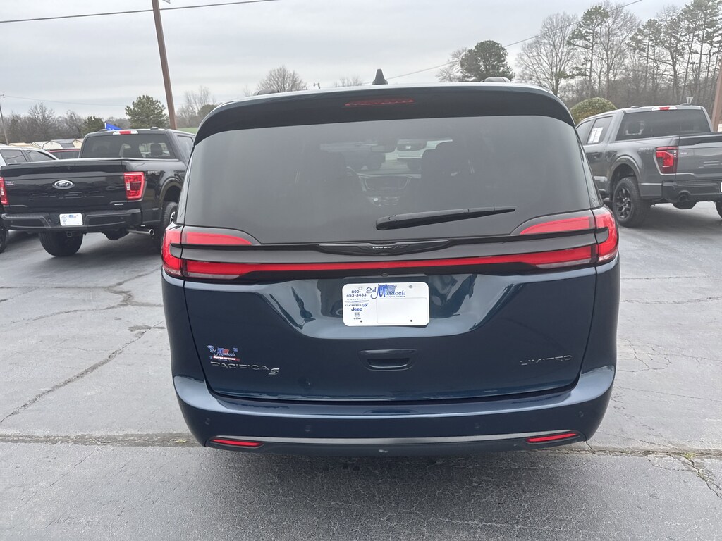 Certified. Blue Pearl 2025 Chrysler Pacifica Limited FWD 9-Speed 948TE Automatic 3.6L V6 24V VVT 13 Speakers, 3rd row seats: split-bench, 4-Wheel Disc Brakes, ABS brakes, Air Conditioning, Alloy wheels, AM/FM radio: SiriusXM 360L, Apple CarPlay/Android Auto, Audio memory, Auto-dimming Rear-View mirror, Automatic temperature control, Black Seats, Brake assist, Bumpers: body-color, Compass, Delay-off headlights, Driver door bin, Driver vanity mirror, Driver's Seat Mounted Armrest, Dual front impact airbags, Dual front side impact airbags, Electronic Stability Control, Emergency communication system: Chrysler Connect, Four wheel independent suspension, Front anti-roll bar, Front Bucket Seats, Front dual zone A/C, Front fog lights, Front reading lights, Fully automatic headlights, Garage door transmitter, Heated door mirrors, Heated front seats, Heated rear seats, Heated steering wheel, Illuminated entry, Integrated Active Noise Cancellation, Knee airbag, Low tire pressure warning, Memory seat, Nappa Leather Bucket Seats with S Logo, Navigation System, Occupant sensing airbag, Outside temperature display, Overhead airbag, Overhead console, Panic alarm, ParkView Rear Back-Up Camera, Passenger door bin, Passenger seat mounted armrest, Passenger vanity mirror, Power door mirrors, Power driver seat, Power Liftgate, Power moonroof, Power passenger seat, Power steering, Power windows, Quick Order Package 27P, Radio data system, Radio: Uconnect 5 Nav with 10.1 Display, Rain sensing wipers, Rear air conditioning, Rear reading lights, Rear window defroster, Rear window wiper, Reclining 3rd row seat, Remote keyless entry, Roof rack, Security system, Speed control, Split folding rear seat, Spoiler, Steering wheel mounted audio controls, Tachometer, Telescoping steering wheel, Tilt steering wheel, Touring Suspension, Traction control, Trip computer, Turn signal indicator mirrors, Variably intermittent wipers, Ventilated front seats, Voltmeter, Wheels: 20 x 7.5 S-Model Aluminum Design 1.19/28 City/Highway MPGCertification Program Details: Ford Blue Advantage: Blue Certified* 139 Point Inspection* Transferable Warranty* Vehicle History* Warranty Deductible: $100* Roadside Assistance* Limited Warranty: 3 Month/4,000 Mile (whichever comes first) after new car warranty expires or from certified purchase date* and 11,000 FordPass Rewards Points to use toward first maintenance visit