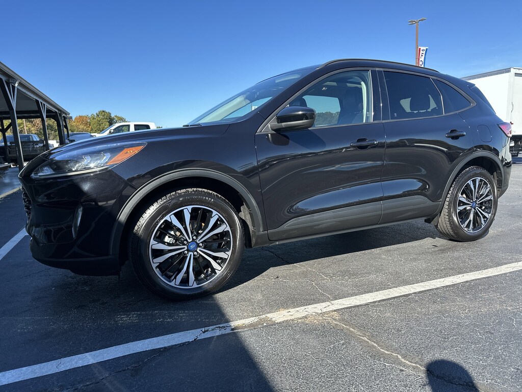 Black Metallic 2021 Ford Escape SEL AWD 8-Speed Automatic EcoBoost 2.0L I4 GTDi DOHC Turbocharged VCT Adaptive Cruise Control w/Stop-and-Go, Air Conditioning, Auto High-beam Headlights, Automatic temperature control, Black Roof-Rack Side Rails, Black Upper Window Molding w/Black Beltline Molding, Brake assist, Class II Trailer Tow Package, Delay-off headlights, Electronic Stability Control, Equipment Group 302A, Ford Co-Pilot360 Assist+, Front & Rear Black Ford Oval, Front & Rear Floor Mats w/Logo, Front dual zone A/C, Front fog lights, Fully automatic headlights, Gloss Black 5-Bar Upper Grille w/Chrome Surround, Gloss Black Badges & Emblems, Gloss Black Sideview Mirror Caps, Hands-Free Foot-Activated Liftgate, Heated ActiveX Front Bucket Seats, Instrument Panel w/6.5 Digital Screen, Memory Driver's Seat & Side-View Mirrors, Panoramic Vista Roof, Power Liftgate, Power steering, Radio: B&O Sound System by Bang & Olufsen, Rear window defroster, Remote keyless entry, SEL Stealth AWD Package, Speed Sign Recognition, Speed-sensing steering, Split folding rear seat, Technology Package, Traction control, Voice-Activated Touchscreen Navigation System, Wheels: 19 Machined-Face Ebony-Painted Aluminum, Wireless Charging Pad.Recent Arrival! 23/31 City/Highway MPG