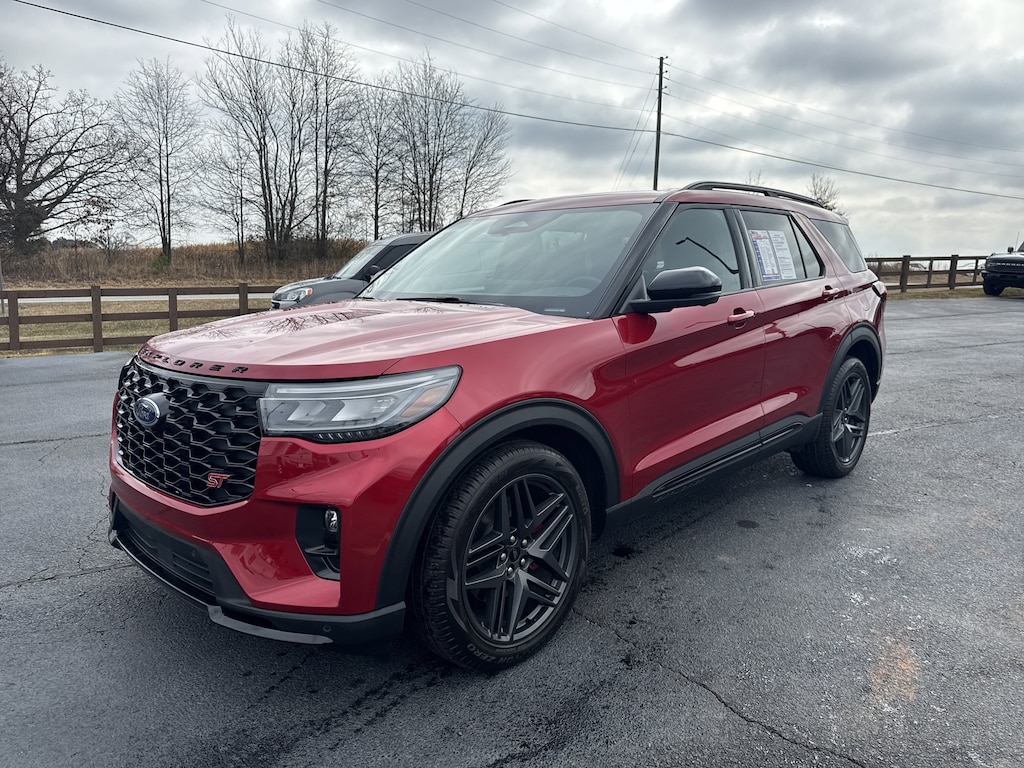Certified. Red Metallic 2025 Ford Explorer ST 4WD 10-Speed Automatic 3.0L EcoBoost V6 10 Speakers, Air Conditioning, AM/FM radio: SiriusXM with 360L, Auto High-beam Headlights, Automatic temperature control, B&O Sound System by Bang & Olufsen, Brake assist, Delay-off headlights, Electronic Stability Control, Equipment Group 400A Standard Package, Exterior Parking Camera Rear, Front dual zone A/C, Front fog lights, Fully automatic headlights, Internet access capable: FordPass Connect 5G, Memory seat, Multicontour Seats w/Front Active Motion, Navigation System, Panoramic Vista Roof w/Power Shade, Power driver seat, Power Liftgate, Power steering, Power windows, Radio: B&O Sound System by Bang & Olufsen, Rear air conditioning, Rear window defroster, Remote keyless entry, Sun and Sound Package.Certification Program Details: Ford Blue Advantage: Blue Certified* 139 Point Inspection* Transferable Warranty* Vehicle History* Warranty Deductible: $100* Roadside Assistance* Limited Warranty: 3 Month/4,000 Mile (whichever comes first) after new car warranty expires or from certified purchase date* and 11,000 FordPass Rewards Points to use toward first maintenance visit