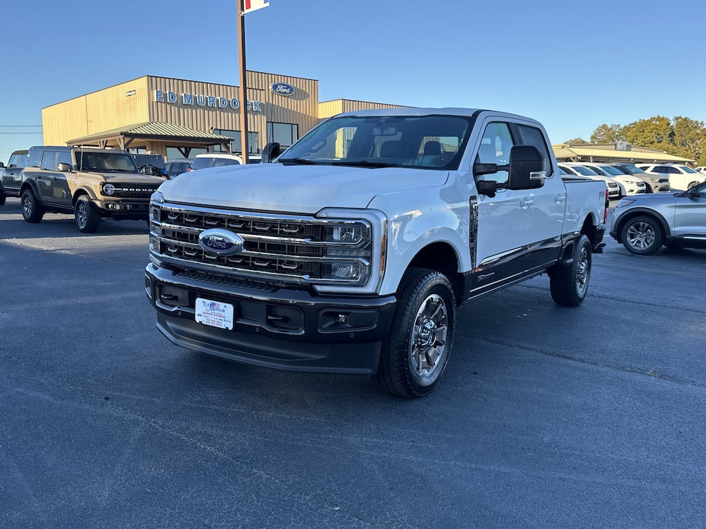 Brown 2025 Ford F-350SD King Ranch 4WD 10-Speed Automatic Power Stroke 6.7L V8 DI 32V OHV Turbodiesel 14 Speakers, 4-Wheel Disc Brakes, ABS brakes, Air Conditioning, Alloy wheels, AM/FM radio: SiriusXM with 360L, Auto High-beam Headlights, Automatic temperature control, Brake assist, Delay-off headlights, Dual front impact airbags, Dual front side impact airbags, Electronic Stability Control, Emergency communication system: SYNC 4 911 Assist, Flow-Through Console, Front anti-roll bar, Front Center Armrest, Front dual zone A/C, Front fog lights, Fully automatic headlights, FX4 Off-Road Package, Heads-Up Display, Heated front seats, Heated rear seats, Hill Descent Control, Low tire pressure warning, Memory seat, Navigation System, Off-Road Specifically Tuned Shock Absorbers, Order Code 710A, Overhead airbag, Panic alarm, Passenger door bin, Pedal memory, Power driver seat, Power passenger seat, Power steering, Power windows, Radio: B&O Unleashed Sound System by Bang & Olufsen, Rain sensing wipers, Rear reading lights, Rear seat center armrest, Rear window defroster, Remote keyless entry, Security system, SiriusXM Radio w/360L, Speed control, Split folding rear seat, Steering wheel memory, Steering wheel mounted A/C controls, Steering wheel mounted audio controls, SYNC 4 w/Enhanced Voice Recognition, Tachometer, Telescoping steering wheel, Tilt steering wheel, Traction control, Trip computer, Unique FX4 Off-Road Box Decal, Unique King Ranch Leather 40/Console/40 Seats, Variably intermittent wipers, Ventilated front seats, Wheels: 20 Bright Machined Cast Aluminum.Recent Arrival! Odometer is 7636 miles below market average!