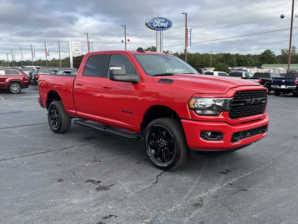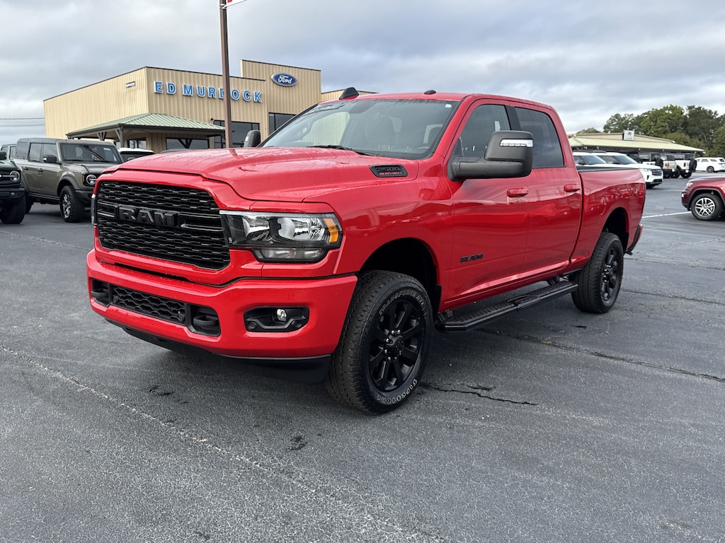 Flame Red Clearcoat 2024 Ram 2500 Big Horn 4WD 8-Speed Automatic 6.4L V8 12 Touchscreen Display, 2 Way Rear Headrest Seat, 2nd Row In Floor Storage Bins, 3.73 Axle Ratio, 4 Way Front Headrests, 4-Wheel Disc Brakes, 40/20/40 Split Bench Seat, 4G LTE Wi-Fi Hot Spot, 6 Speakers, 8.4 Touchscreen Display, 9 Alpine Speakers w/Subwoofer, ABS brakes, Active Noise Control System, Air Conditioning, Air Conditioning ATC w/Dual Zone Control, Alexa Built-In, All R1 High Radios, All Radio Equipped Vehicles, Anti-Spin Differential Rear Axle, Apple CarPlay, Auto Power-Folding Mirrors, Bed Utility Group, Big Horn IP Badge, Black Exterior Mirrors, Black Exterior Truck Badging, Black Headlamp Bezels, Black Interior Accents, Black Ram Head Tailgate Badge, Black Tail Lamp Bezels, Black Wheel Center Hub, Bluetooth Handsfree Phone & Audio, Body Color Door Handles, Body Color Grille Surround, Brake assist, Center Hub, Center Stack Storage Drawer, Connected Travel & Traffic Services, Connectivity - US/Canada, Disassociated Touchscreen Display, Driver door bin, Dual front impact airbags, Dual front side impact airbags, Dual Glove Boxes, Electronic Stability Control, Electronically Controlled Throttle, Emergency communication system: SiriusXM Guardian, Exterior Mirrors Courtesy Lamps, Exterior Mirrors w/Heating Element, Exterior Mirrors w/Supplemental Signals, Foam Bottle Insert (Door Trim Panel), Footwell Courtesy Lamp, For Details, Visit DriveUconnect.com, For More Info, Call 800-643-2112, Forward & Reverse Utility Lights, Front anti-roll bar, Front Armrest w/Cupholders, Front Center Armrest w/Storage, Front Center Seat Cushion Storage, Front Fog Lamps, Front License Plate Bracket, Front reading lights, Front Seat Back Map Pockets, Global Telematics Box Module (TBM), Gloss Black Nostrils/MIC Black Grille, Glove Box Lamp, Google Android Auto, GPS Antenna Input, GPS Navigation, HD Radio, Heated door mirrors, Illuminated entry, Integrated Center Stack Radio, Integrated Voice Command w/Bluetooth, Leather Wrapped Steering Wheel, LED Bed Lighting, Level 1 Equipment Group, Locking Lower Glove Box, Low tire pressure warning, Manual Adjust 4-Way Front Passenger Seat, Manufacturer's Statement of Origin, Mirror Running Lights, MOPAR Deployable Bed Step, MOPAR Spray In Bedliner, Night Edition, Occupant sensing airbag, Off-Road Information Pages, Outside temperature display, Overhead airbag, Overhead console, Painted Flat Cab-Length Side Steps, Painted Front Bumper, Painted Rear Bumper, Panic alarm, ParkSense Front/Rear Park Assist System, Pa